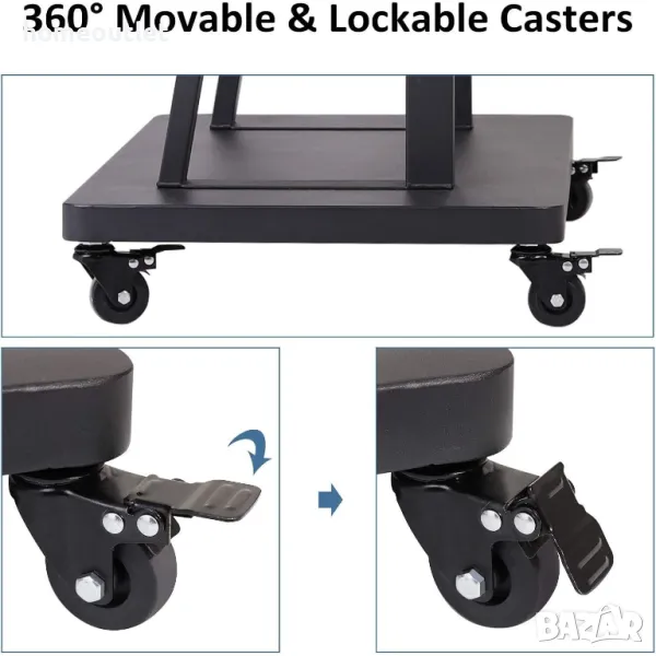 Подвижната стойка за телевизор ви позволява да регулирате височината от 140 до 163 см, за да можете лесно да повдигнете мониторите си и да ги поставите под перфектен ъгъл на гледане.