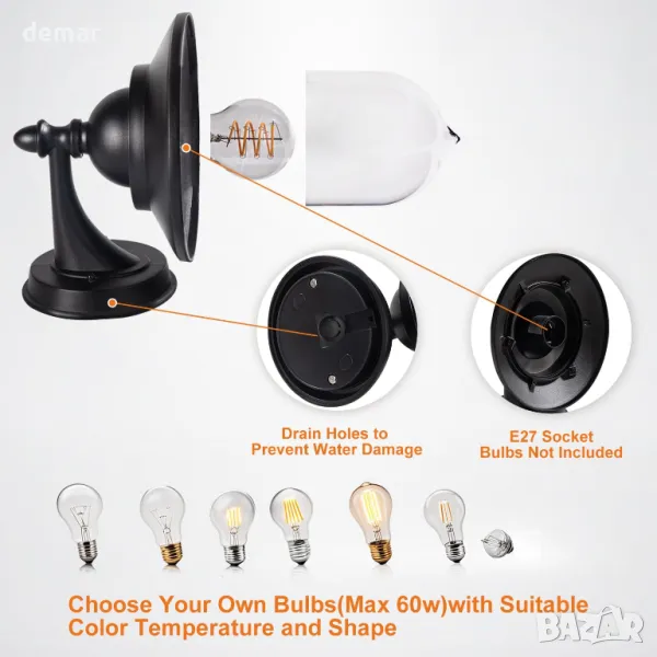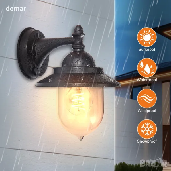 Външна стенна лампа EBION Coach Lantern, традиционна винтидж ретро, (крушка не е включена)