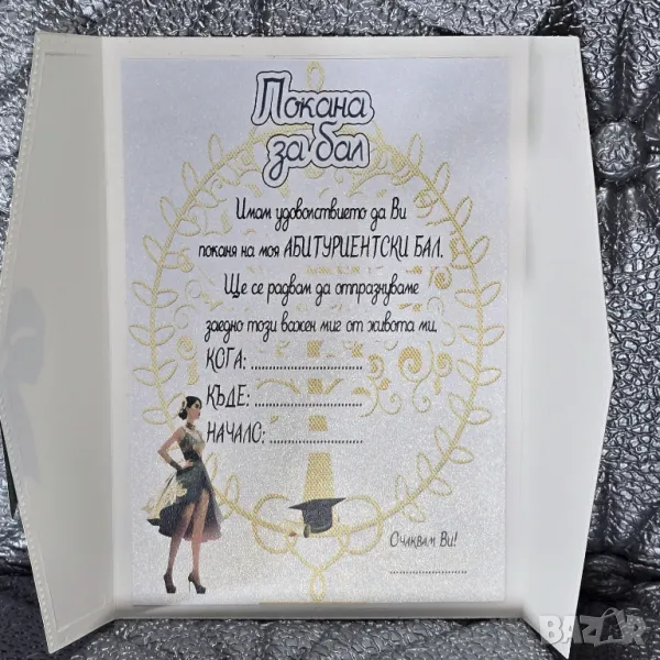 ⚜️ Покана от перлен картон за рожден ден, юбилей, абитуриентски бал → Обява 50190558