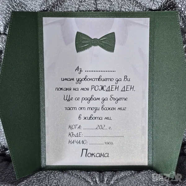 ⚜️ Покана от перлен картон за рожден ден, юбилей, абитуриентски бал, снимка 1 - Покани - 50190558 ⚜️ Покана от перлен картон за рожден ден, юбилей, абитуриентски бал, снимка 2 - Покани - 50190558 ⚜️ Покана от перлен картон за рожден ден, юбилей, абитуриентски бал, снимка 3 - Покани - 50190558 ⚜️ Покана от перлен картон за рожден ден, юбилей, абитуриентски бал, снимка 4 - Покани - 50190558 ⚜️ Покана от перлен картон за рожден ден, юбилей, абитуриентски бал, снимка 5 - Покани - 50190558 ⚜️ Покана от перлен картон за рожден ден, юбилей, абитуриентски бал, снимка 6 - Покани - 50190558 ⚜️ Покана от перлен картон за рожден ден, юбилей, абитуриентски бал, снимка 7 - Покани - 50190558 1/7