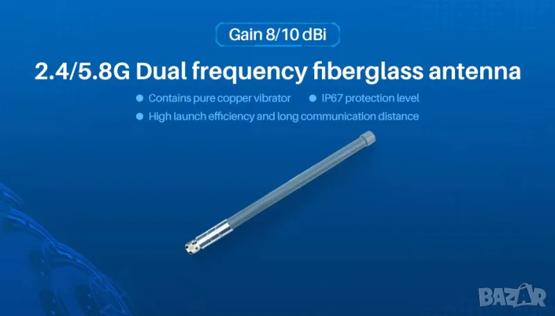 Усилване: 8dBi (@2.4GHz) / 10dBi (@5.8GHz)
