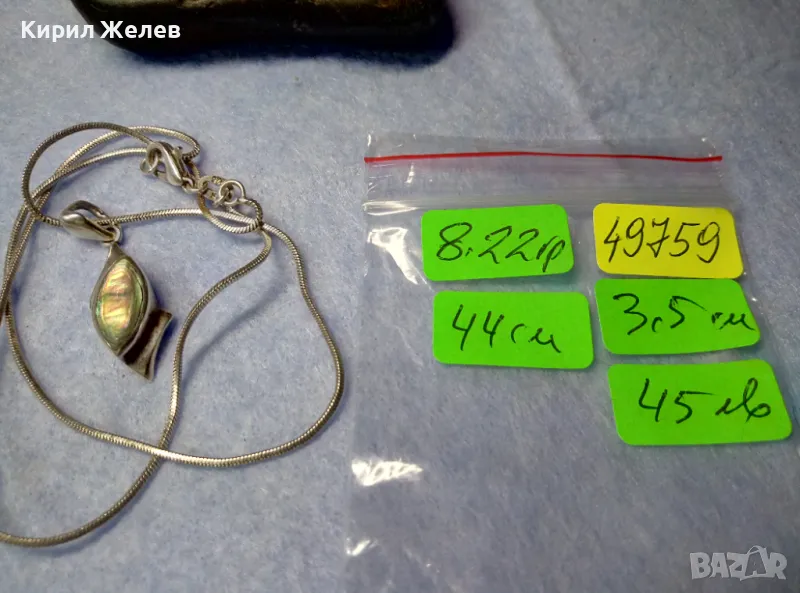 НЕЖНО СРЕБЪРНО ЛАНЧЕ КОЛИЕ със СРЕБЪРЕН ПЕНДАНТ СРЕБРО 925 с КРАСИВ КРАЛСКИ СЕДЕФ 49759