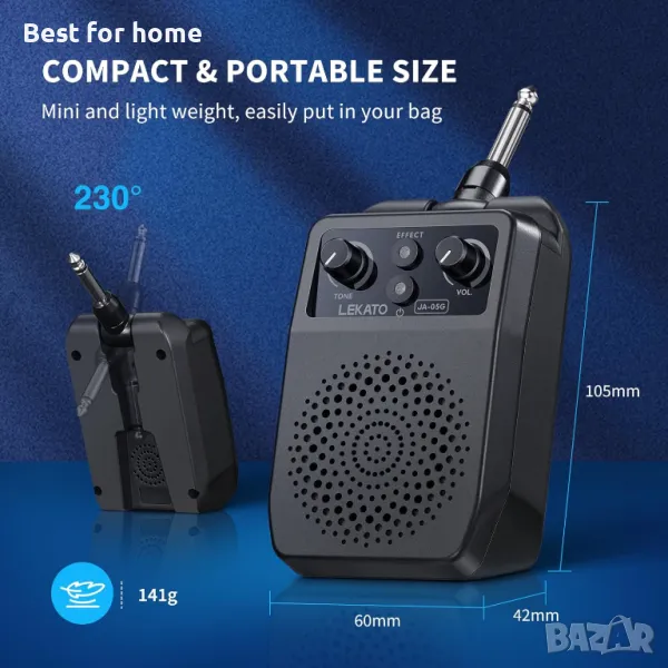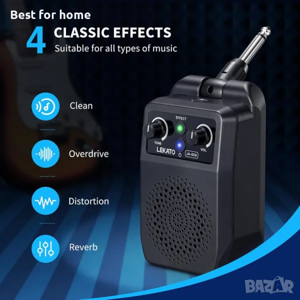 LEKATO Мини усилвател за електрическа китара с 4 ефекта