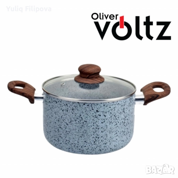 Тенджера Voltz Siena, Дълбока, Мраморно каменно керамично покритие, Светло сив