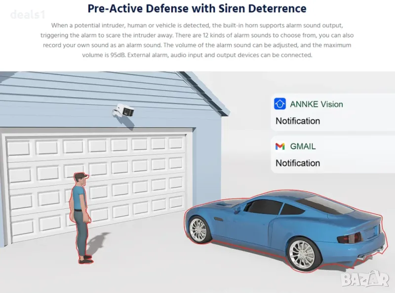 – Вграден микрофон, активна сирена и аларма допълват функциите ѝ.