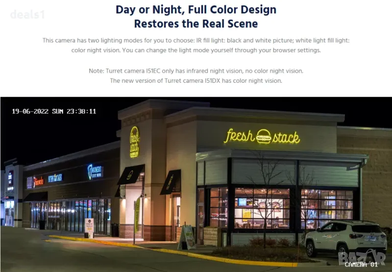 – С BSI сензор, камерата предоставя цветно нощно виждане и инфрачервено нощно виждане.