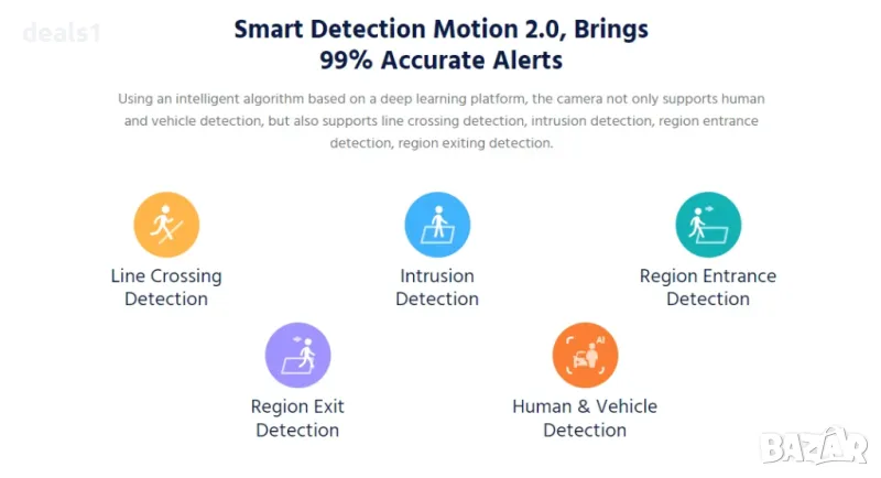 – Камерата е оборудвана и с интелигентно разпознаване на хора и превозни средства.