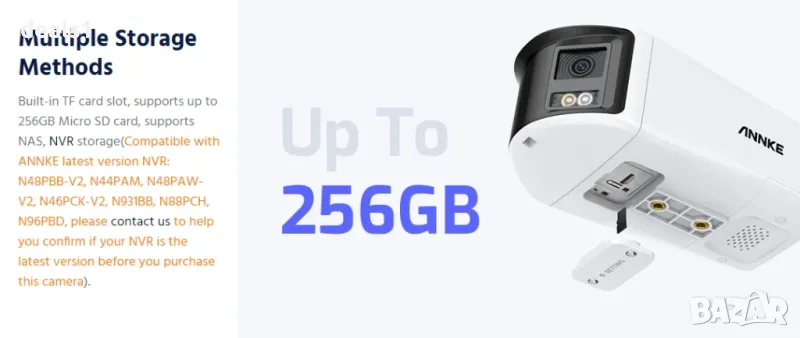 Съвместима с най-новата версия на ANNKE NVR: N48PBB-V2, N44PAM, N48PAW-V2, N46PCK-V2, N931BB, N88PCH, N96PBD.