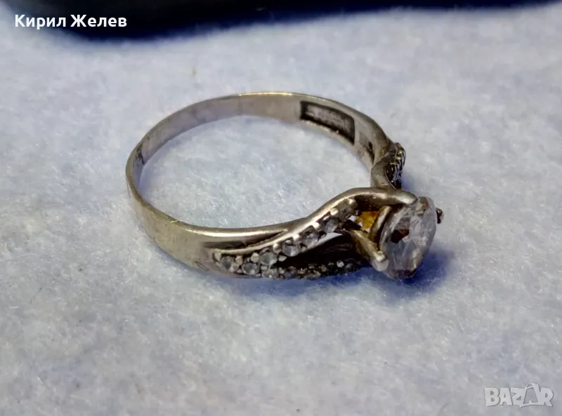 ПРЕКРАСЕН ФИН СКЪПОЦЕНЕН ПРЪСТЕН СРЕБРО 925 с БЛЕСТЯЩ ФИАНИТ в ЦЕНТЪРА и НАТУРАЛНИ ЦИРКОНИ 47586