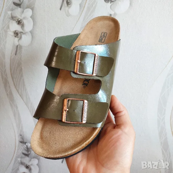 BIRKENSTOCK - Arizona. Емблематичен стил, допълнен от характерния комфорт на подложката за крака BIRKENSTOCK. Тази версия се отличава и с допълнителен слой пяна, като меката ѝ подложка за крака предлага допълнителен комфорт. Изобразена е в красива, омаслена набукова кожа.