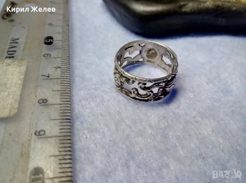 Стар АВТОРСКИ ХУДОЖЕСТВЕНО ОРНАМЕНТИРАН АЖУРЕН СРЕБЪРЕН ПРЪСТЕН СРЕБРО 835 МАЙСТОРСКА РАБОТА 8489