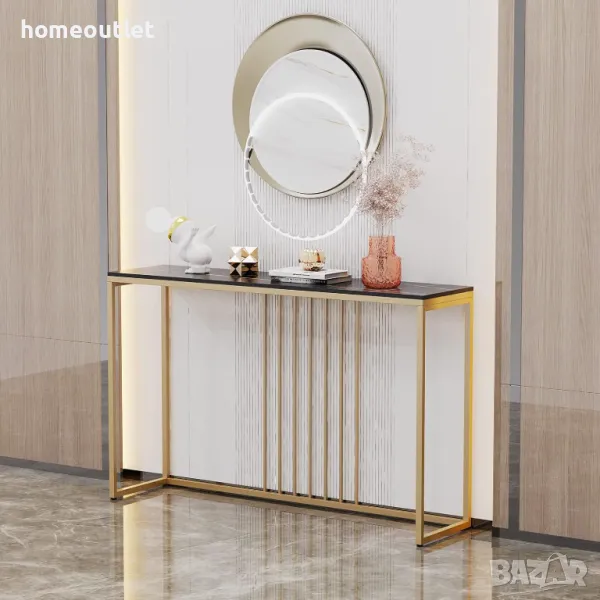 Нашите конзолни маси са изключително стабилни, с удебелен плот от синтерован камък и метална рамка.