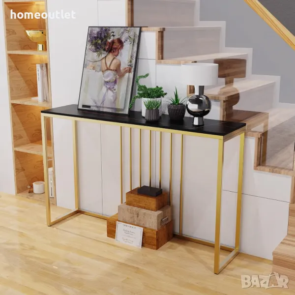 Покритието с боя при висока температура върху златната метална рамка прави конзолната маса устойчива на ръжда и предпазва от надраскване и избледняване на цвета.