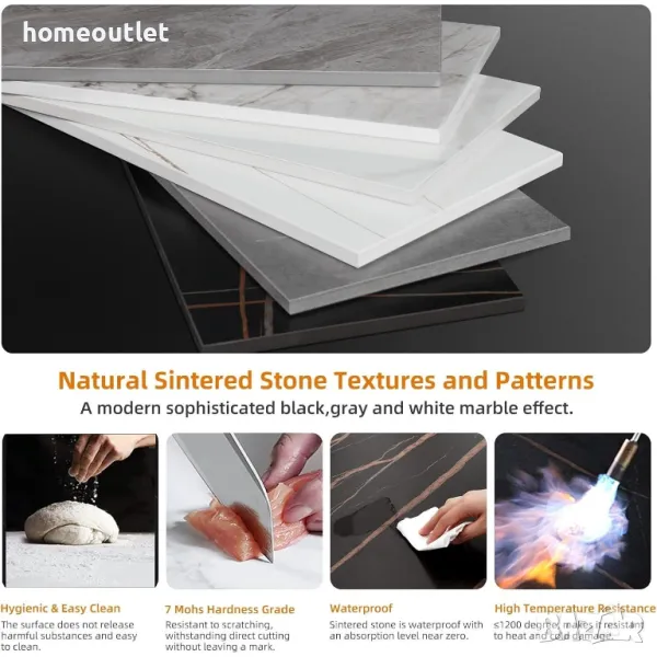 Устойчивият на висока температура плот е по-добър от изкуствения мраморен материал, можете да поставите гореща напитка и това по никакъв начин няма да увреди повърхността.