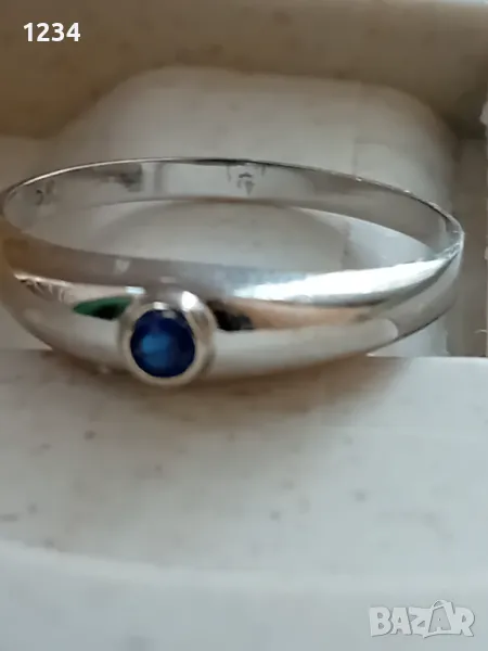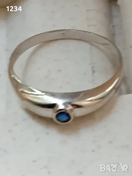 В много добро състояние ,без забележки.17,3 мм..Изработен от бяло злато 14 карата и малък син сапфир.Нежен е 1,10 грама.