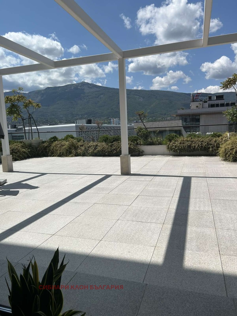 Модерен офис в офисна сграда клас А в непосредствена близост до МОЛ Парадайз, висок етаж с тераса от 190 кв. м. Пространството е разпределено на четири кабинета, заседателна зала, кухня и отворено пространство с работни места.