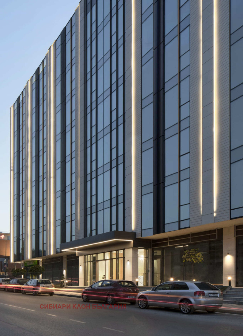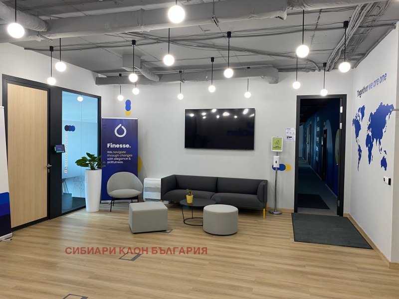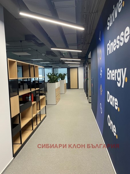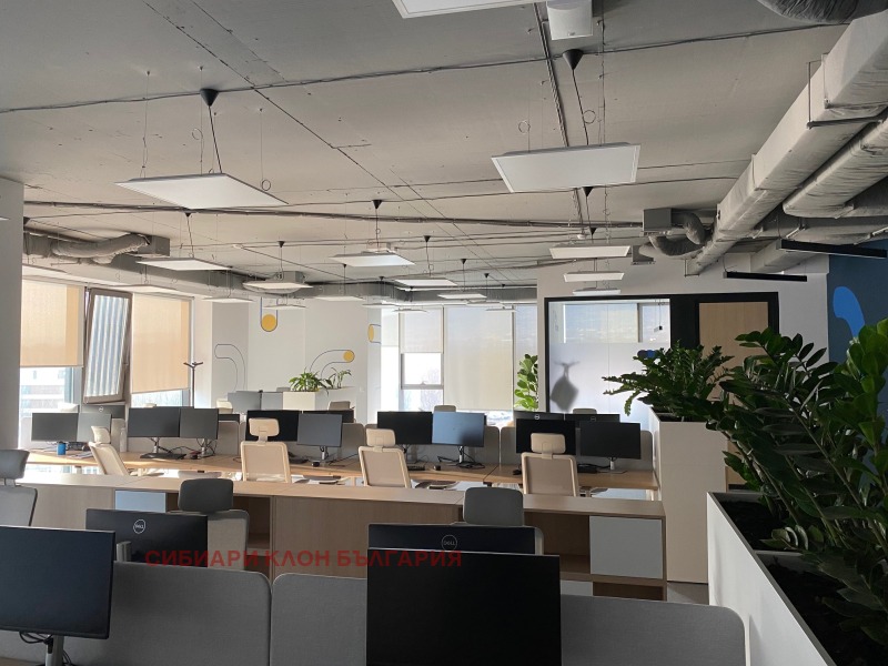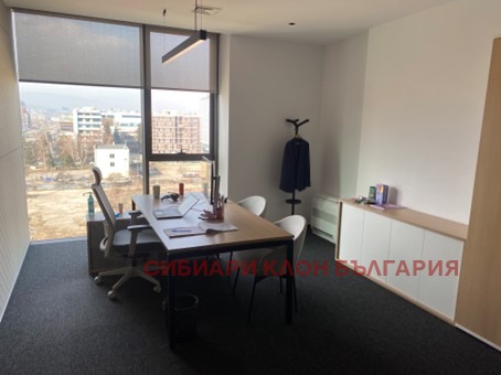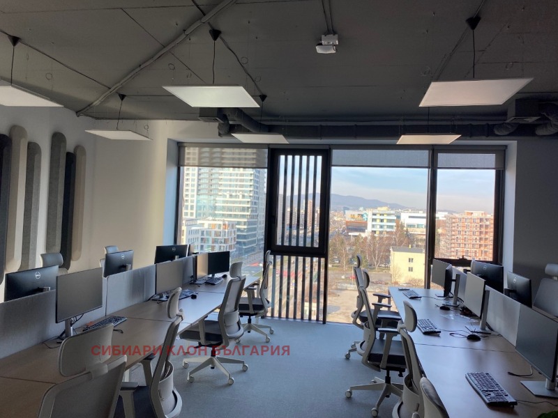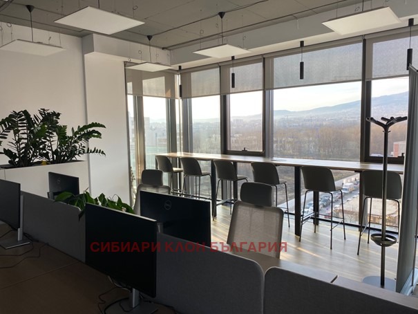 Напълно обзаведен офис клас А с гледка към Витоша, тераса, голяма кухня, санитарни помещения, заседателни зали, самостоятелни кабинети и отворено пространство с обособени работни станции.В цената е включен и наем на мебелите. Добра локация в близост до метростанция Витоша и МОЛ Парадайз. Възможност за наемане на подземни паркоместа в сградата. В сградата се начислява допълнително сервизна такса в размер на 2,56 евро на кв. м. без ДДС.