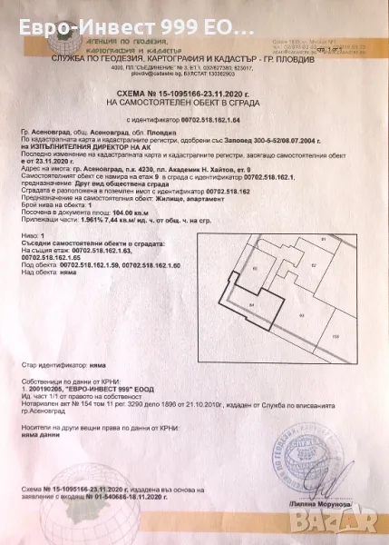 гр. Асеновгарад, площад "Академик Н. Хайтов", ет. 9.