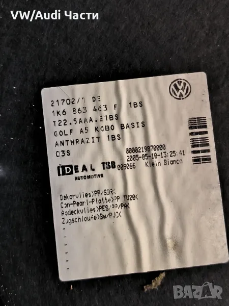 Кора стелка багажник за Голф 5 Volkswagen Golf 5 1K6863463F / 1K6 863 463 F → Обява 50194227
