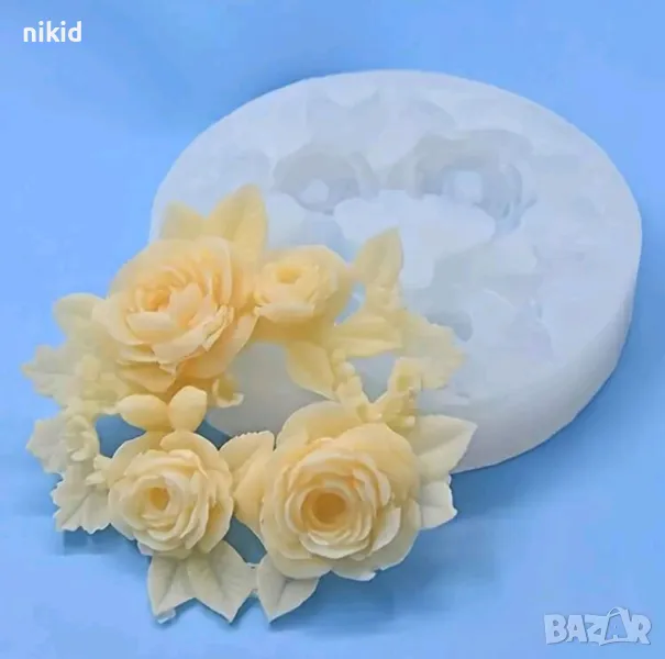 Рози с листа венец силиконов молд форма фондан шоклад смола декор → Обява 50194294