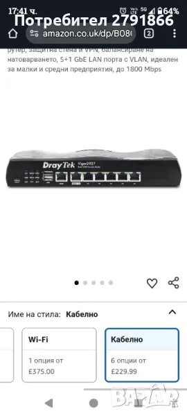 DrayTek Vigor V2927 Ethernet 1 Gb двоен WAN рутер, 5+1 GbE LAN порта с VLAN, защитна стена и VPN