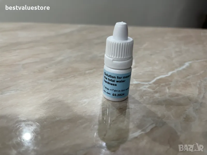 Нов тестер за определяне твърдостта на водата отчитащ в Немски или Френски градуси. Тестерът за твърда вода е на капки, като всяка капка отговаря на 1 Френски или Немски градус, като разликата е само в количеството тествана вода.