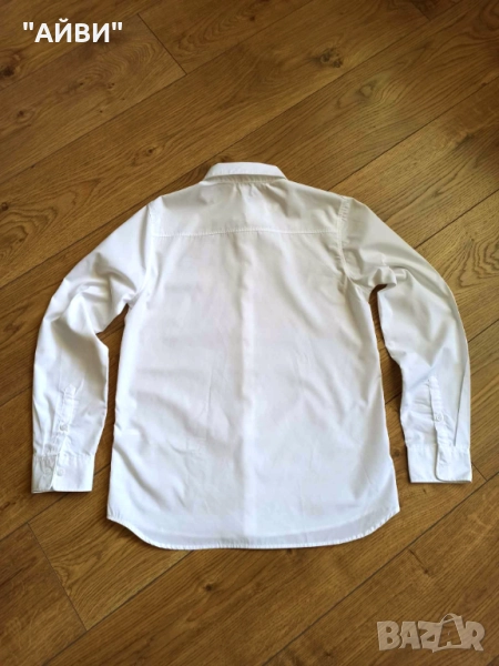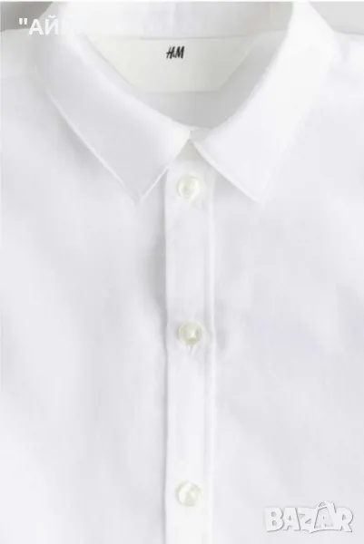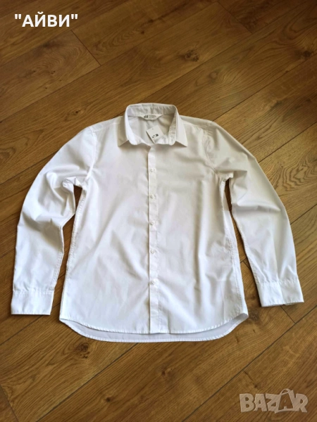 Нова риза на H&M ръст 158 с дълги ръкави, яка, копчета отпред, платка на гърба и заоблен долен край.