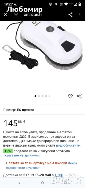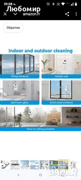 робот за почистване на прозорци с функция за пръскане, 5600Pa - Автоматичен робот за почистване на прозорци - Електрически почистващ препарат за прозорци - Дистанционно управление за вътрешни и външни прозорци.Автоматично пръскане с вода: Този робот за прозорци е оборудван с функция за автоматично ултразвуково пръскане с вода, която почиства прозорците по-щателно и гарантира, че всеки ъгъл на стъклото е бляскав. Широкият модел на пръскане поддържа почистваната зона мокра и по този начин осигурява оптимална ефективност на почистване. Автоматичната/ръчната водна струя може да се превключва с дистанционно управление.Силно засмукване, което никога не пада: Нашият робот за почистване на прозорци е снабден с усъвършенствана технология на вакуумния мотор и осигурява силна всмукателна мощност от 5600 Pa, за да гарантира здраво прилепване към повърхностите. Този робот за почистване на прозорци е оборудван с вграден UPS (непрекъсваемо захранване), така че роботът за почистване на прозорци може да продължи да работи 30 минути по време на прекъсване на захранването и без риск от падане. Насладете се на спокойствие и безупречно чисти прозорци с нашия надежден робот за почистване на прозорци.Ефективно почистване: Двойно-спиралната система за почистване на робота за почистване на прозорци може да концентрира мръсотията, така че роботът за почистване на прозорци да може да се движи свободно около прозореца. Ротационният метод на почистване осигурява двойна почистваща мощност. И оборудвана с 10 микрофибърни кърпи с висока плътност, тя не пада и не надрасква стъклената повърхност, силно избърсва петна и ефективно премахва замърсявания.В случай на неочаквано прекъсване на захранването, роботът за почистване на прозорци може да задържи стъклото за 20-30 минути и да задейства аларма. Автоматичният робот за почистване на прозорци е оборудван с 4-метров захранващ кабел и 4-метрово предпазно въже, за да се предотврати случайно падане. Многобройните защитни функции на автоматичния робот за почистване на прозорци осигуряват безопасност при почистване на прозорци на високи етажи.Широко приложение: Роботът за почистване на прозорци е интелигентен домакински уред. Работи с вграден вакуумен мотор, а мощният капацитет за абсорбиране на вакуум е до 5600Pa, което му помага да засмуква въздух и да стои върху стъклена повърхност. Робот за почистване на множество повърхности, съвместим с всички видове стъкло, плоски стени, маси, подове, тавани, прозорци и труднодостъпни места.
