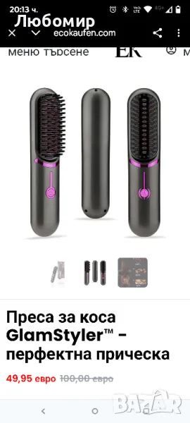 Безжична четка за изправяне и къдрене на коса, черна, керамика, 19.8x4.2x4cmОткрийте най-доброто решение за перфектно стилизирана коса, независимо къде се намирате! С нашата преносима четка за стилизиране на коса, кажете сбогом на непокорната коса веднъж завинаги и се насладете на безпроблемно стилизиране с качество, подобно на салон.Сбогом на непокорната и електрифицирана коса! GlamStyler™ ви осигурява перфектно стилизирана коса за минути, спестявайки ви ценно време и усилия.