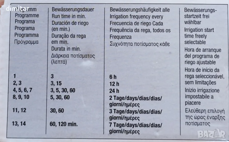 Поливен програматор, снимка 1 - Напояване - 50198097 Поливен програматор, снимка 2 - Напояване - 50198097 Поливен програматор, снимка 3 - Напояване - 50198097 Поливен програматор, снимка 4 - Напояване - 50198097 Поливен програматор, снимка 5 - Напояване - 50198097 Поливен програматор, снимка 6 - Напояване - 50198097 Поливен програматор, снимка 7 - Напояване - 50198097 Поливен програматор, снимка 8 - Напояване - 50198097 Поливен програматор, снимка 9 - Напояване - 50198097 Поливен програматор, снимка 10 - Напояване - 50198097 Поливен програматор, снимка 11 - Напояване - 50198097 Поливен програматор, снимка 12 - Напояване - 50198097 Поливен програматор, снимка 13 - Напояване - 50198097 Поливен програматор, снимка 14 - Напояване - 50198097 Поливен програматор, снимка 15 - Напояване - 50198097 Поливен програматор, снимка 16 - Напояване - 50198097 Поливен програматор, снимка 17 - Напояване - 50198097 1/17