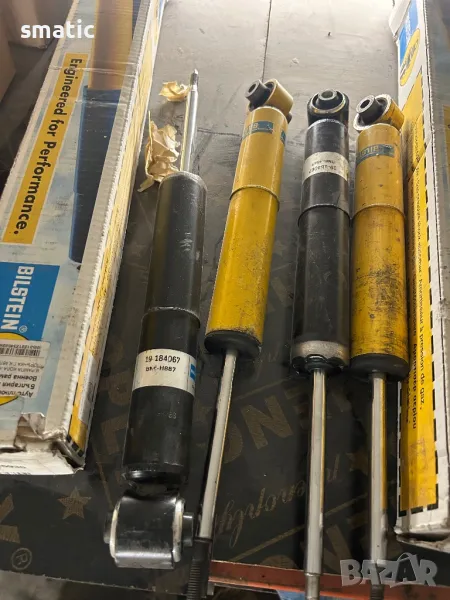 Амортисьорите са 2бр нормални и 2бр спортни на BILSTEIN B6 жълтите. Амортисьорите не са карани на кола. Използвани са за тестове на една машина. Продавата се, защото не могат да се пригодят за това, което ни трябват.