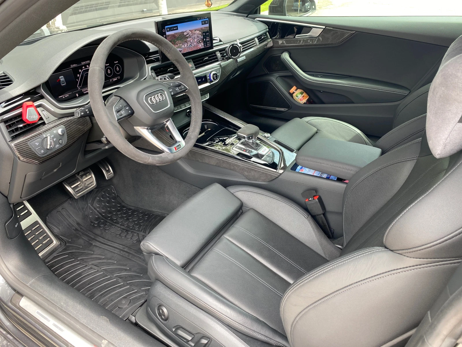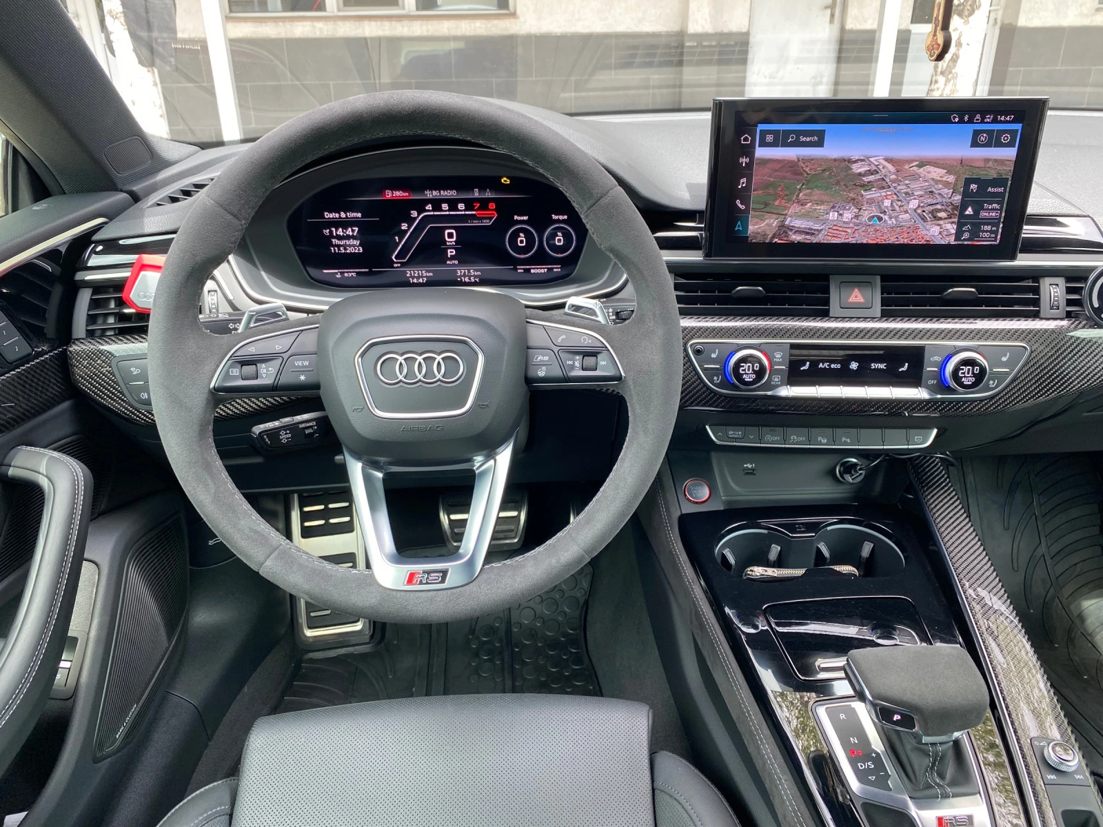Автомобилът е в гаранция до 01. 2027г Пълна сервизна история до момента Пакет за съхранение и багажно отделение пакет за помощ при шофиране пакет за помощ при паркиране Audi connect (интернет базирани услуги) Bluetooth система за свободни ръце (Audi Phone Box) дизайнерски пакет: RS сив динамичен пакет сензори за паркиране отпред и отзад камера за заден ход (APS Advanced) система за подпомагане на шофирането асистент при стартиране (асистент при задържане) система за подпомагане на шофирането асистент за паркиране Head-up дисплей информационно-развлекателен пакет, декоративни инкрустации от карбонов кепър Isofix стойки за дете седалка керамична спирачна система отпред спирачни апарати боядисани в антрацит дигитален инструментален панел (виртуален кокпит плюс) комфортен автоматичен климатик 3 зони комфортен пакет RS, контурно / амбиентно осветление лумбални опори отпред, ел. . регулируеми, LM джанти 9x20 (5-сегментни спици Evo дизайн, черни, лъскави) мултимедиен интерфейс MMI Navigation Plus с MMI Touch ексклузивен пакет карбонова оптика Audi допълнителни части в черно боя с перлен ефект следене на налягането в гумите RS спортна изпускателна система предавател за отваряне на гаражна врата (интегриран) вентилация на предните седалки покривало на седалката комбинация кожа / mono. pur 550 звукова система Bang & Olufsen затъмнени задни стъкла (privacy glazing) Странична въздушна възглавница за водача/пътника акустични прозорци на предните врати регулиране против приплъзване (ASR) Audi connect (система за спешно повикване и помощ) Audi Drive Select AUX-IN връзка асферично външно огледало ляво, асферично външно огледало дясно черно външно огледало дисплей за външна температура LED мигачи вградени във външните огледала спирачна система с рекуперационна система спирачен асистент плат за таван черен устройство против кражба за колела (ключалки на джантите) помощно средство за лесно влизане праг на вратата панели с алуминиева вложка и надписи, осветени LED входни светлини с функция за прожектиране система за подпомагане на водача: City - Функция аварийно спиране (Audi pre sense City) система за подпомагане на водача: асистент за смяна на лентата (Side Assist) цветен дисплей (7, 0 инча) ламинирано предно стъкло ключ за дистанционно управление система за ограничаване на скоростта поставка за чаша в централната конзола интегрирана задна врата със спойлер автоматично отваряне на задна врата LED задни светлини с динамични мигачи отопляемо задно стъкло заден спойлер алуминиева визия, интериорни елементи от имитация на кожа Isofix стойки за детски седалки система за въздушни възглавници за глава (странична защита) задни подглавници, кормилна колона (волан) мех. Регулиране по височина/надлъжно осветено огледало 2, 9 литров двигател - 331 kW V6 24V TFSI пакет за непушачи Ото филтър за частици (OPF) педали и поставка за крака от неръждаема стомана цифрово радио (DAB) комплект за ремонт на гуми сплит/ сгъваема облегалка на задната седалка (40: 20: 40) стандарт за ниски емисии Euro 6d, функция за превключване (лостчета/бутони) на волана отопляеми дюзи за миене на предното стъкло предна странична въздушна възглавница система старт/стоп броня RS версия вложки на панела на вратите от алкантара универсален интерфейс Bluetooth, топлоизолационно стъкло тонирано в зелено Оглед с предварителнa уговорка! ПРЕДЛАГАМЕ ВИ ЛИЗИНГ С ПРЕФЕРЕНЦИАЛНИ УСЛОВИЯ И БЪРЗО ОДОБРЕНИЕ СРЕЩУ ЛИЧНА КАРТА ДО 