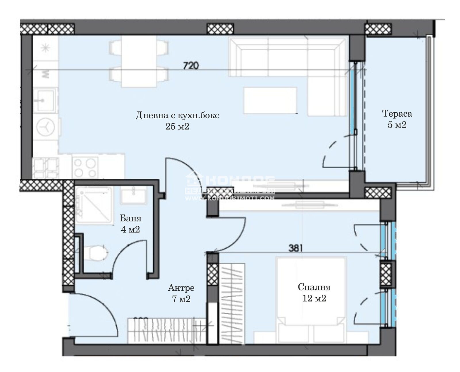 Оферта 66826: Предлагаме Ви възможността да закупите двустаен апартамент в новоизграждащ се луксозен жилищен комплекс с модерна визия, проектиран да създаде максимален комфорт на живущите в него. Функционално разположени жилищни секции с елегантен силует готов да предложи комфорт и модерен начин на живот. Едно от основните му предимства е страхотната локация, отлична комуникативност и динамична пътна инфраструктура, която осигурява бърз и лесен достъп до комплекса от всяка точка на града. Той съчетава лукс, спокойствие и комфорт с подсигурени паркоместа и гаражи. Жилището се състои от дневна 25кв.м. с кухненска част и трапезария, една самостоятелна спалня 12,45кв.м., баня с тоалетна, входно антре и една тераса. Основната концепция при проектирането е да се постигнат просторни и функционални стаи, с цел да се създаде максимален уют на модерното семейство. Изключителна съвременна архитектура и модерна технология на строителство. Визията е иновативна, привличаща внимание с уникалността си. Всяко жилище ще разполага с пълно окабеляване за домофон, интернет и кабелна телевизия, общите части са луксозно завършени, жилищата са с алуминиева дограма с троен стъклопакет от най-висок клас, масивна блиндирана входна врата. За удобство на живущите съществува възможността да закупят подземни паркоместа и гаражи с топла връзка към комплекса. Гъвкави схеми на разсрочено плащане спрямо възможностите на клиента в рамките на строителството или закупуване чрез Банков Кредит, на изключително изгодни условия за клиенти на агенцията !!! Приложените изображения са от завършени проекти на строителната фирма.ВИЖТЕ ОЩЕ ИЗГОДНИ ОФЕРТИ НА https://www.kondorimoti.com/ С ЕЖЕДНЕВНА АКТУАЛИЗАЦИЯ!