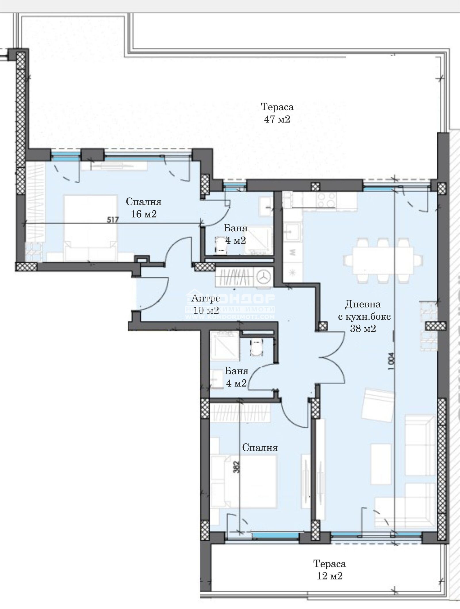 Оферта 66856: Предлагаме Ви възможността да закупите тристаен панорамен апартамент в новоизграждащ се луксозен жилищен комплекс с модерна визия, проектиран да създаде максимален комфорт на живущите в него. Функционално разположени жилищни секции с елегантен силует готов да предложи комфорт и модерен начин на живот. Едно от основните му предимства е страхотната локация, отлична комуникативност и динамична пътна инфраструктура, която осигурява бърз и лесен достъп до комплекса от всяка точка на града. Той съчетава лукс, спокойствие и комфорт с подсигурени паркоместа и гаражи. Жилището се състои от просторна светла дневна/38кв.м./ с кухненска част и трапезария, две самостоятелни спални: детска 12кв.м. и родителска 16кв.м. със собствена баня, втора баня с тоалетна, входно антре с място за гардероб/перално и две панорамни тераси. Основната концепция при проектирането е да се постигнат просторни и функционални стаи, с цел да се създаде максимален уют на модерното семейство. Изключителна съвременна архитектура и модерна технология на строителство. Визията е иновативна, привличаща внимание с уникалността си. Всяко жилище ще разполага с пълно окабеляване за домофон, интернет и кабелна телевизия, общите части са луксозно завършени, жилищата са с алуминиева дограма с троен стъклопакет от най-висок клас, масивна блиндирана входна врата. За удобство на живущите съществува възможността да закупят подземни паркоместа и гаражи с топла връзка към комплекса. Гъвкави схеми на разсрочено плащане спрямо възможностите на клиента в рамките на строителството или закупуване чрез Банков Кредит, на изключително изгодни условия за клиенти на агенцията !!! Приложените изображения са от завършени проекти на строителната фирма.ВИЖТЕ ОЩЕ ИЗГОДНИ ОФЕРТИ НА https://www.kondorimoti.com/ С ЕЖЕДНЕВНА АКТУАЛИЗАЦИЯ!