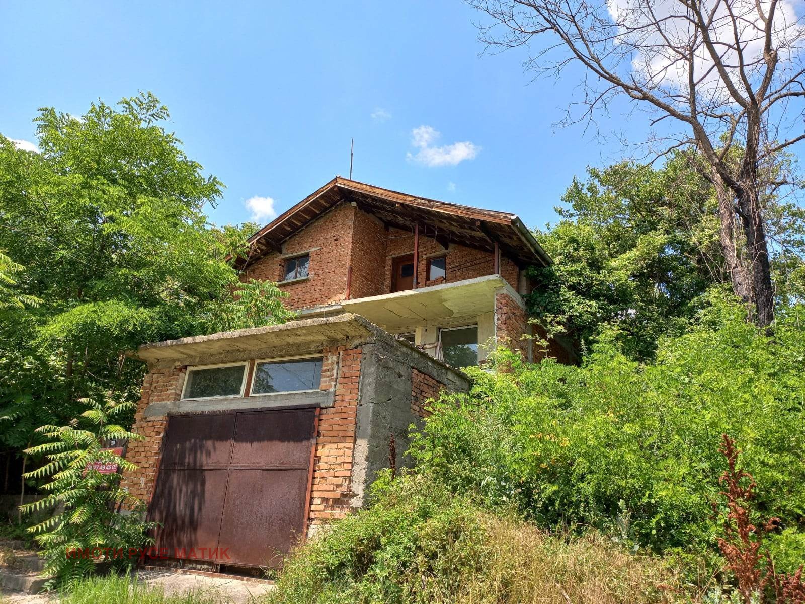 На цената на двустаен апартамент ви предлагаме голямо дворно място с масивна двуетажна къща във високата част на село Червена вода с панорамна гледка. На първи етаж има една стая, коридор, завършена баня с тоалетна, складово помещение с достъп до двоен гараж (30 кв.м) и голямо помещение, подходящо за жилищни нужди, за работилница, за изба. Второ ниво е със следното разпределние: коридор, хол с трапезария и кухня, две отделни спални, складово помещение. Сградата има и тавански етаж, който се състои от 4 стаи и се нуждае от довършителни работи. Първите две нива са завършени - теракот на пода, PVC дограма, ламинат. Къщата е с вътрешно стълбище между етажите и два входа, което позволява да се ползва от две или три семейства. Дворното място е 2377 кв.м.и с лице към улижа 40 м. Продава се заедно с 1200 кв.м. дворно място, граничещо до обявения имот, което е с лице 28 м и е на цена 20000Е. Възможен коментар на общата цената.