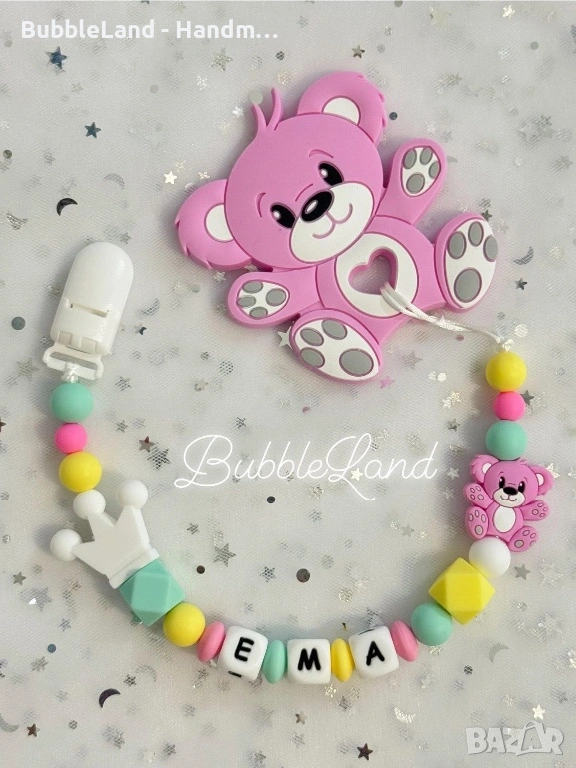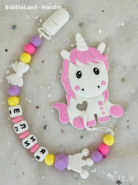 - Персонализирана изработка: Името е включено със специални силиконови букви, което прави клипса уникален и специален подарък.
