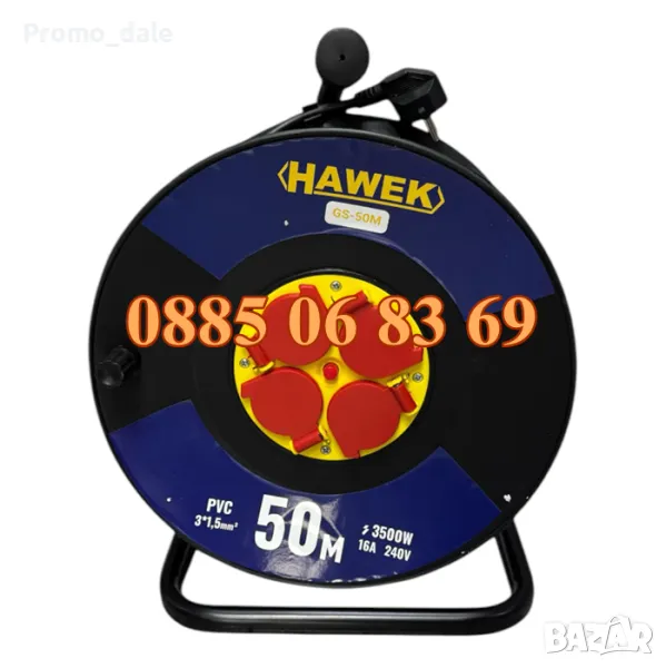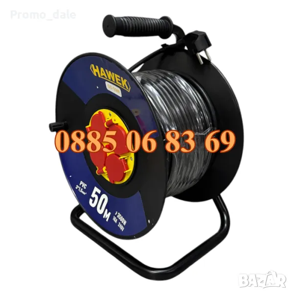 Макара с кабел 50 метра ( удължител ) HAWEK е изключително подходяща за всеки дом. Може да захранва няколко устройства едновременно, което позволява извършването на повече дейности. Дължината на кабела е 50 метра, като напречното сечение на проводника е 3 х 1.5 мм2. Максималното натоварване на кабела по данните, изпратени от производителя, е 16 А, но само ако кабелът е изцяло развит от макарата. Ако се използва частично навит кабел, максималното натоварване се намалява до 4.5 А, поради индукцията на кабела. Макарата е снабдена с 4 контакта, които позволяват включването на максимум 4 устройства.