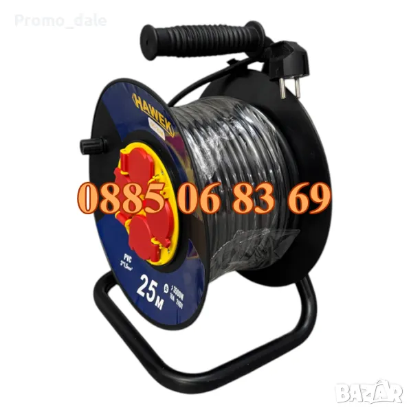Ел. удължител макара 25 метра с 4 гнезда, удължител на макара с кабел 25 м