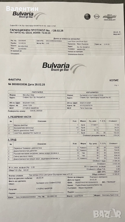 8.СМЕНЕНО МАСЛО ДВИГАТЕЛ 0W30 И ВСИЧКИ ФИЛТРИ КОМПЛЕКТ НА 141000Км