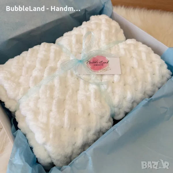 Всяко одеялце изпращаме грижливо опаковано в бяла картонена кутия с панделка. 🎀🤍