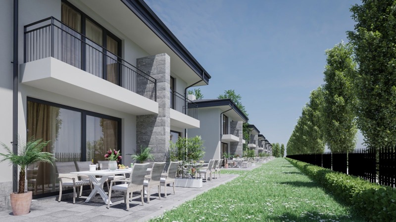 Предлагаме за продажба къща в строеж в новият комплекс'Хисар Резиденс 8',намиращ се в близост до мин.басейн'Ди аква'и бившата резиденция на 950м.от центъра.Къщата се състои от първи етаж:просторна дневна,кухненски кът,баня с тоалетна,килер,веранда,вътрешно стълбище,втори етаж:две просторни спални,два балкона,антре,баня с тоалетна,таван,самостоятелен двор с площ от 80 кв.м и навес за автомобил.Жилището се издава завършено на боя с готови подови настилки,санитарни помещения с плочки,озеленен двор,вертикална планировка и готова веранда.