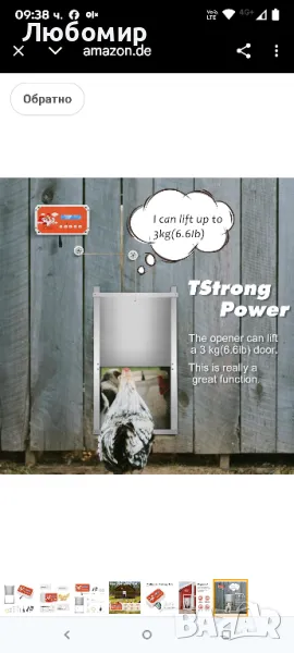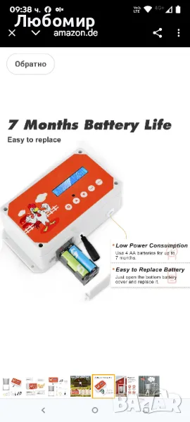 кокошарник, свържете кабела към вратата и сте готови да отворите. Забележка: Вратата се отваря само сутрин между 00:00 и 11:59 и се затваря следобед между 12:00 и 23:59.Дълъг живот на батерията: Изисква 4 AA батерии (не са включени) или външно 6V захранване (включено). Животът на батерията е 6 месеца, а дисплеят показва индикатор за изтощена батерия. Индикаторната светлина „врата затворена“ е видима на разстояние до 100 метра.Подобрена мощност на двигателя: с подобрената супер мощност, може да повдига предмети с тегло 3 кг (6,6 фунта). Няма минимална или максимална височина на вратата. Здрав кабел с товароносимост от 25 фунта (11,7 кг). Икономически ефективна поддръжка.Висококачествени материали: изработен е от висококачествена платка и висококачествен мотор с антифриз, а водоустойчивостта е IP65 и може да издържа на температури от -22°F до 131°F.