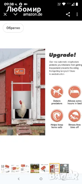 Автоматично отваряне на врата за кокошарник Wisbecost с таймер и сензор за светлина