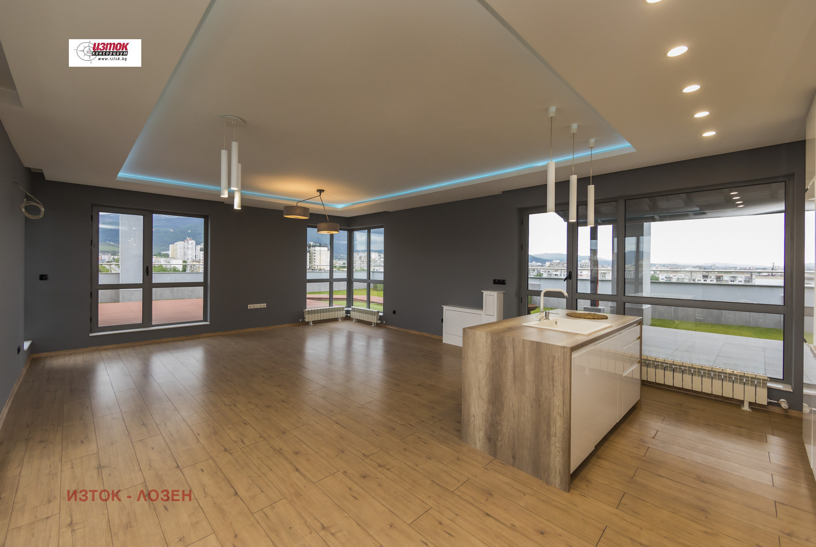 Просторен панорамен мезонет с обща площ 441,81 кв.м., от които 216,19 кв.м. площ на апартамента + 228,62 кв.м. тераси. Апартаментът е в отлично състояние, завършен с качествени материали и модерно оборудвана кухня. Жилището е изключително слънчево, с големи и светли помещения и с три изложения юг/изток/запад. Отоплението е на ТЕЦ. В продажната цена е включено подземно паркомясто.