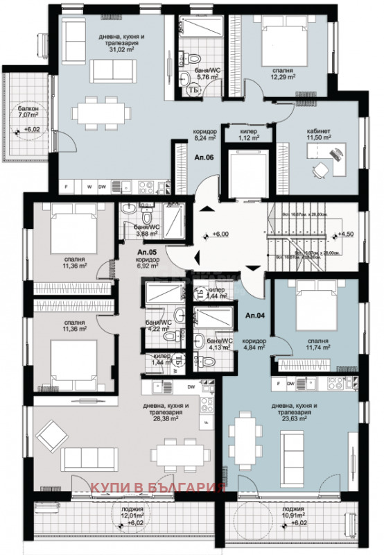 Сградата предлага разнообразие от апартаменти - двустайни, тристайни и четиристайни, специално проектирани за отлично разпределено вътрешно пространство, функционалност и комфорт.