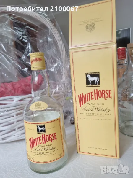 Бутилката и кутията от уиски"Бяло конче-продадена.