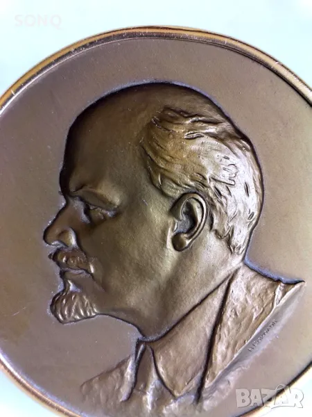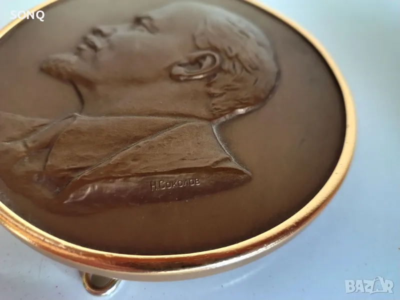 НАСТОЛЕН БРОНЗОВ ПЛАКЕТ - ЛЕНИН ПОДПИСАН ОТ АВТОРА - Н. СОКОЛОВ!