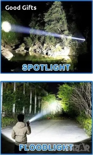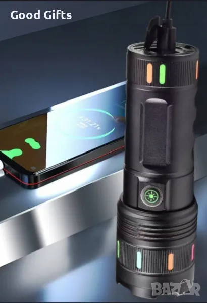 Мощен акумулаторен фенер с батерия, зарядно и кутия.