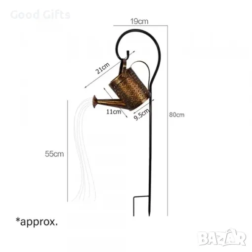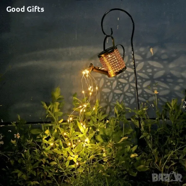 ЕКОЛОГИЧНИ Представяме нашата очарователна соларна лейка, която не само придава чар на вашата градина, но и работи с чиста слънчева енергия, като се грижи за естествената среда. Тази уникална лампа е не само осветление, но и красива декорация, която оживява пространството и създава вълшебна атмосфера.