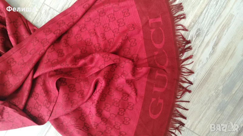 Разкошен Монограмен Шал с Брандово Лого Inspired в Наситено Червен Цвят КОД GU1 → Обява 50206504